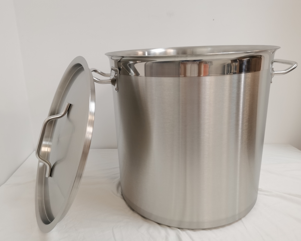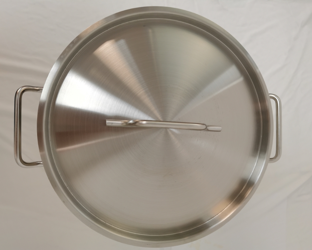 | Specification (mm) | Pot Body Thickness (mm) (Material: 201 SS) | Lid Thickness (mm) (Material: 201 SS) | Base Thickness (mm) (Material: 430 SS) | Aluminum Sheet Thickness (mm) | Base Plate Thickness (mm) (Material: 430 SS) | Total Composite Base Thickness (mm) | Capacity (L) | Capacity (QT) |